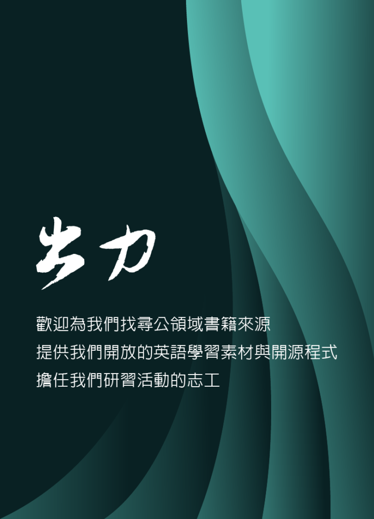 臺灣教育交流協會致力於公版書籍分享、開源軟體推廣、雙語教學推動。我們相信教育資源不應侷限於特定群體,而是能被自由取得、自由使用的公共財。