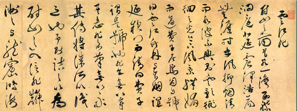 此卷是明代中期狂草書法的經典之作。筆勢雄強,縱而不散,逸而能收;筆法剛健,蘊含豐潤,融匯各家之長。既有“二王”的遒勁與爽朗,懷素、張旭的豪放縱逸,也具“宋四家”的瀟灑與勁峭,更多地展現出祝允明的個人風貌。