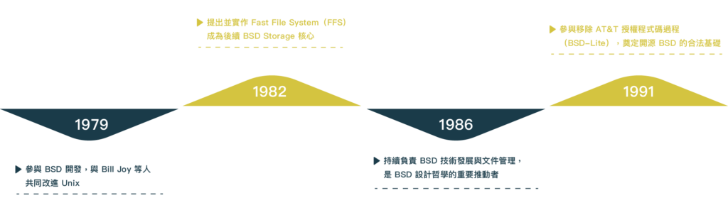代表成果:FFS、BSD 技術文件、BSD 設計哲學